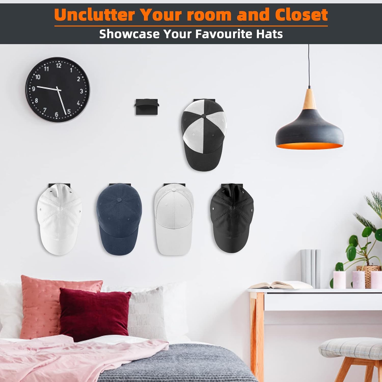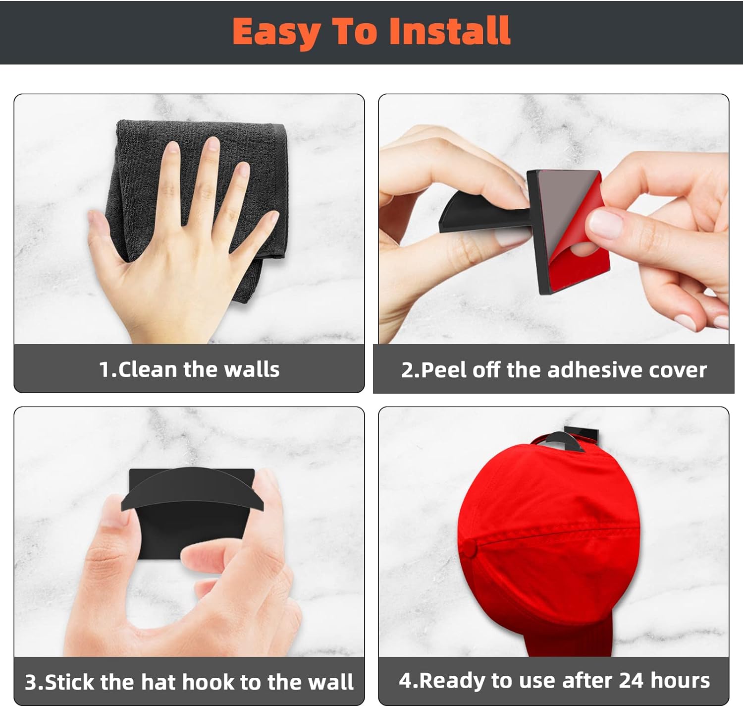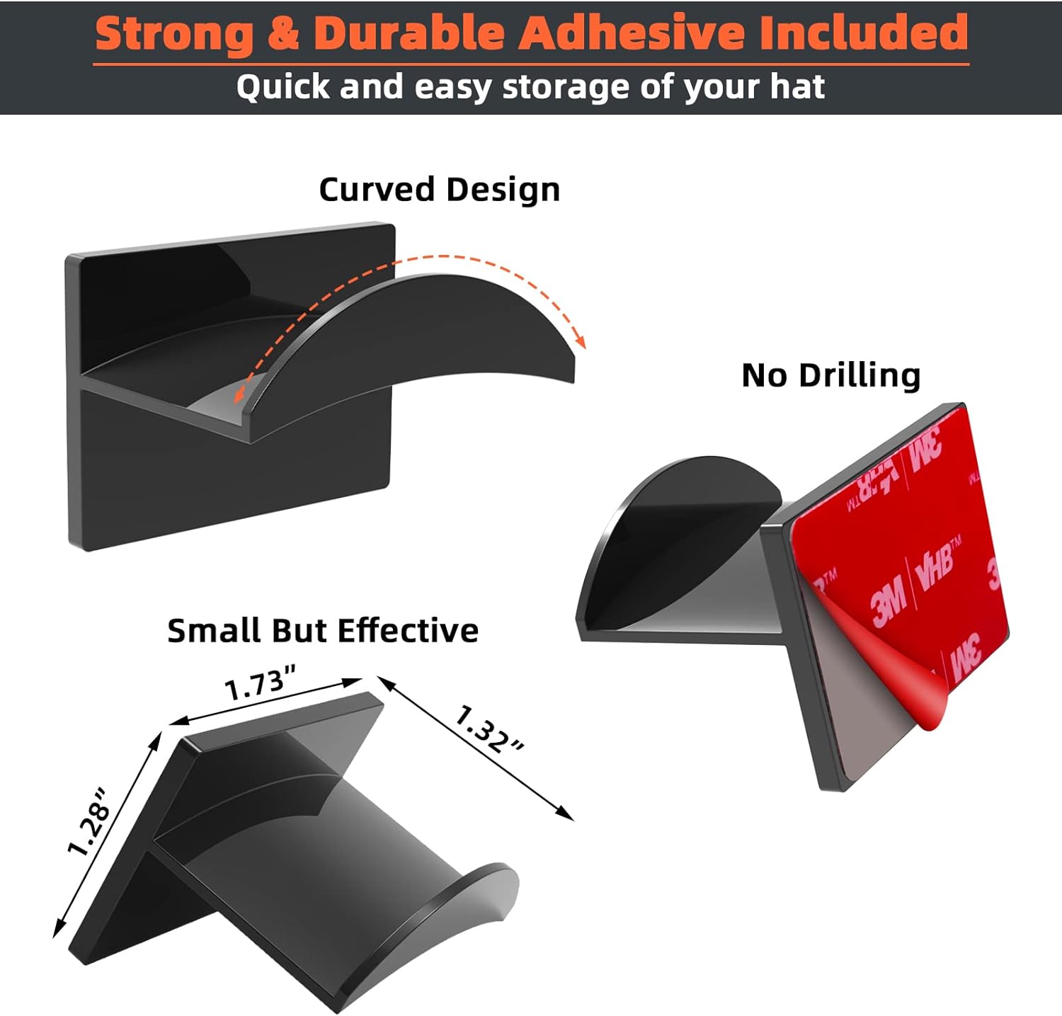 10 PCS Adhesive Hat Hooks for Wall, Strong Hold Hat Hangers, Minimalist Hat Rack Design, No Drilling, Hat Hooks for Baseball Caps, Hat Holder Organizer for Wall, Door, Closet, Office, Bedroom