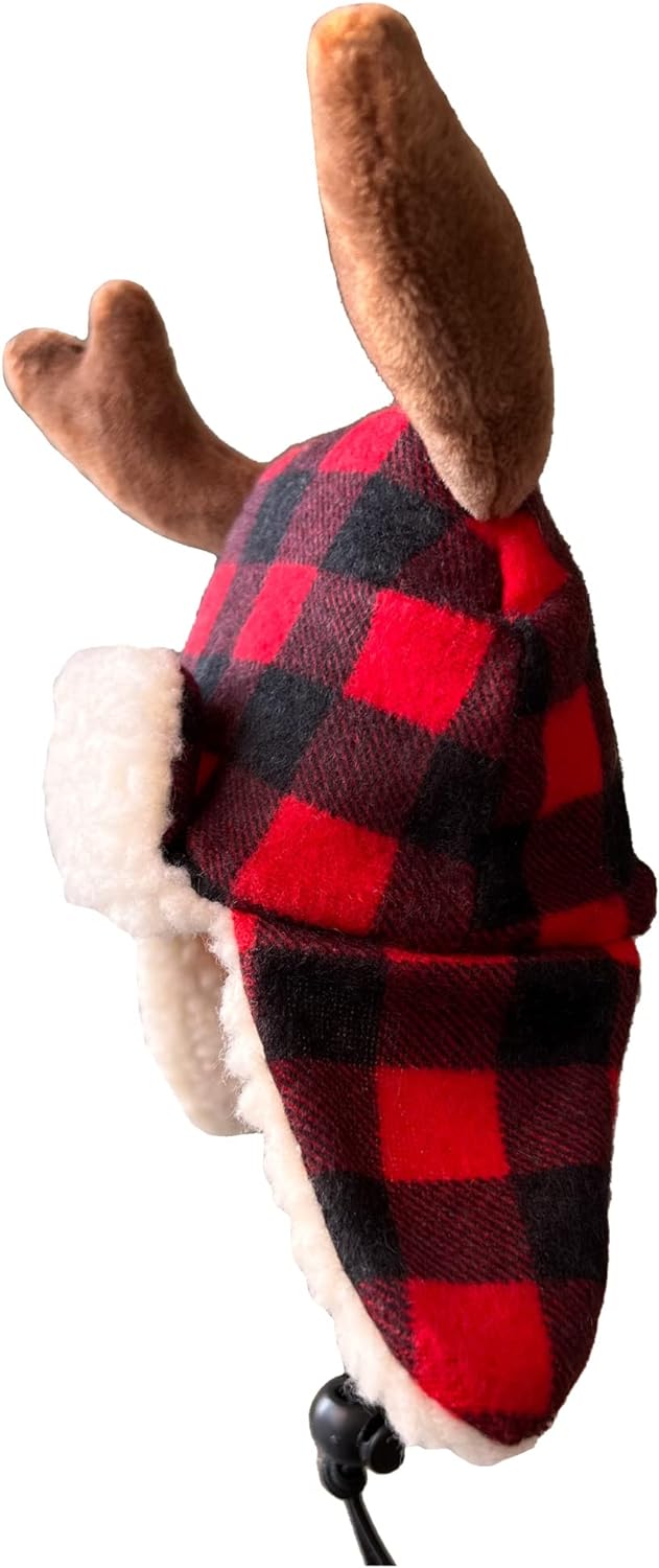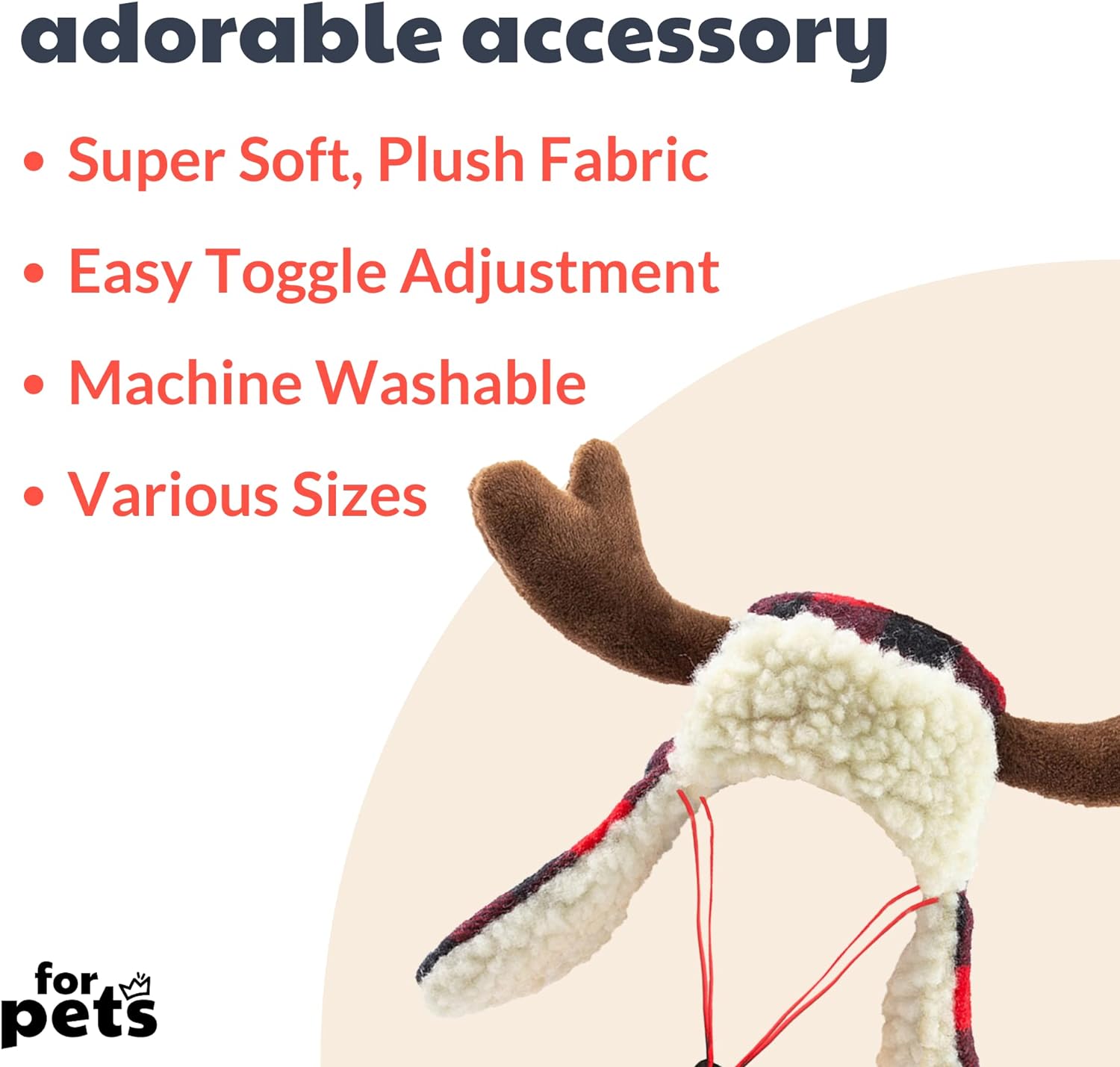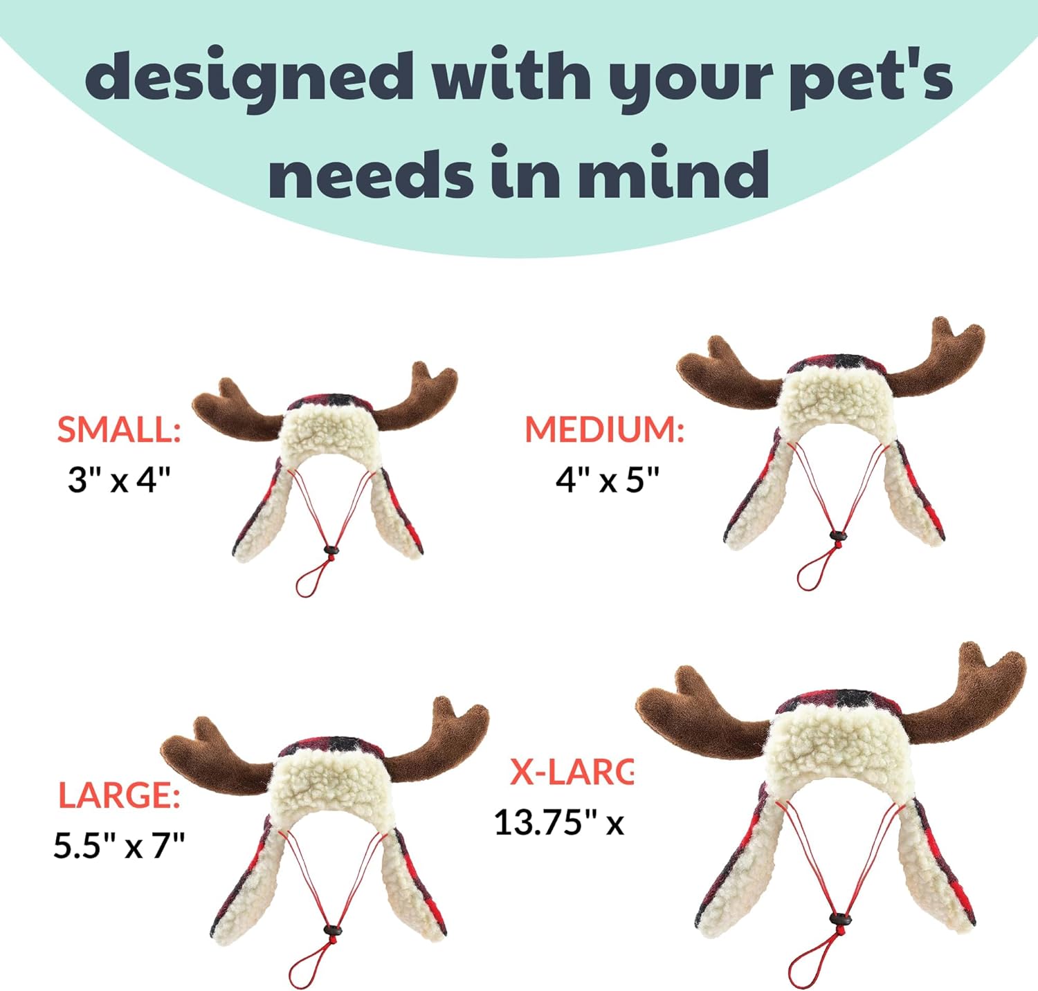 Pet Hat | Antler Buffalo Check (Large) | Festive Christmas Holiday Accessory for Dogs/Cats | Holiday Pet Hat | SnugFit Sliding Toggles for Fit