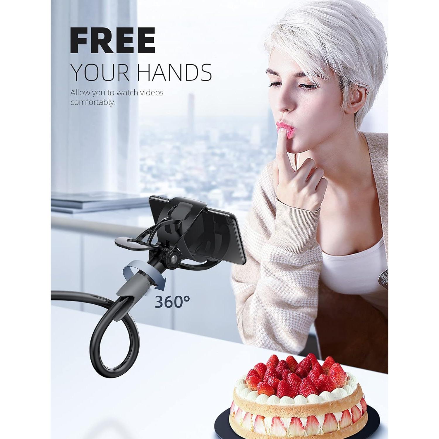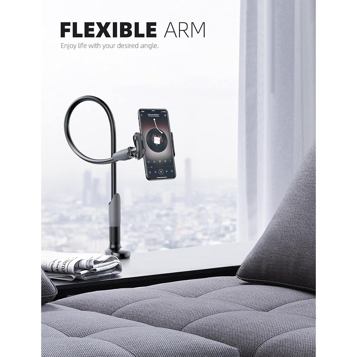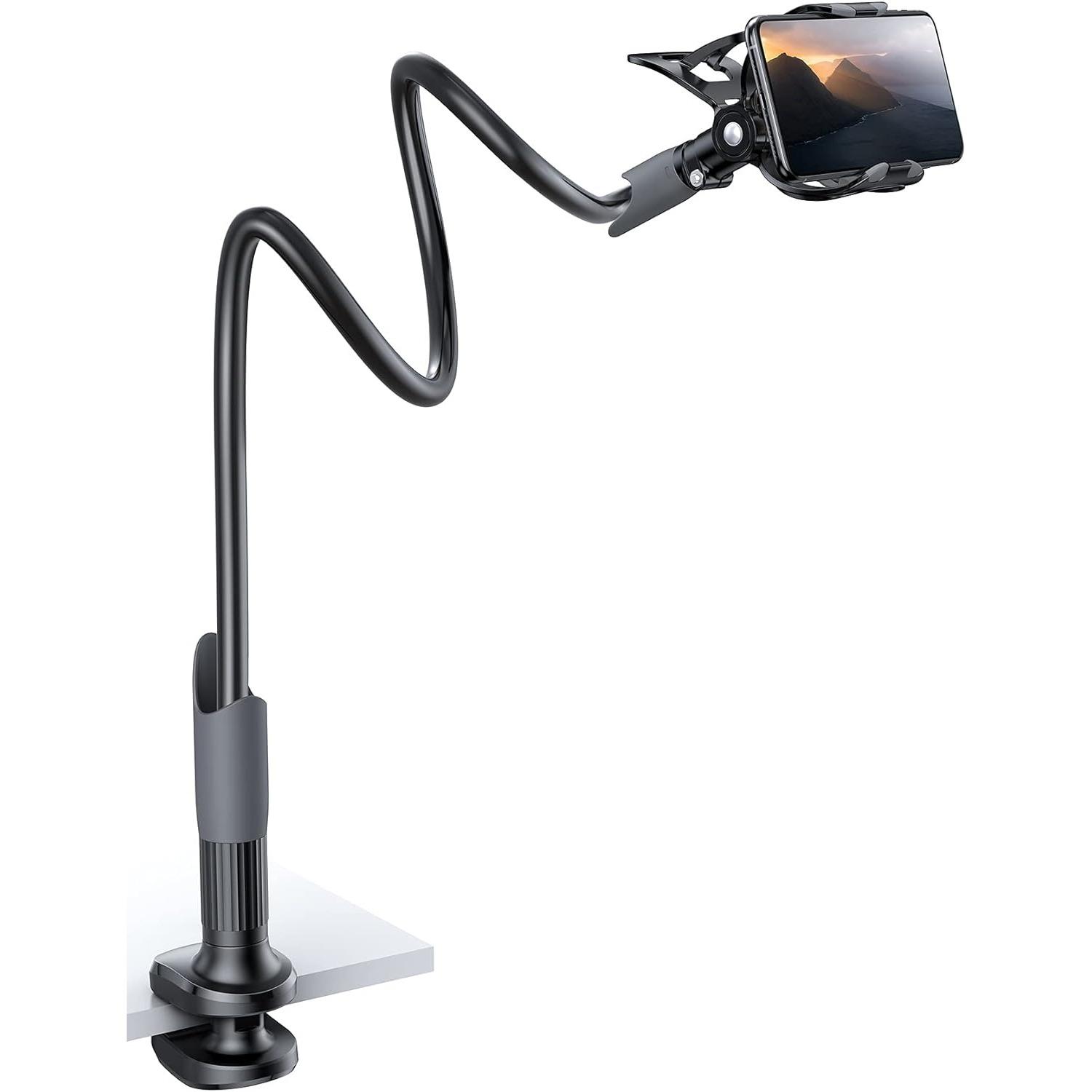 Phone Holder Bed Gooseneck Mount - Cell Phone Clamp Clip for Desk, Flexible Lazy Long Arm Headboard Bedside, Overhead Mount Stand, Compatible with Phone 15 Pro Max/Plus XR X 8 7 6 Plus