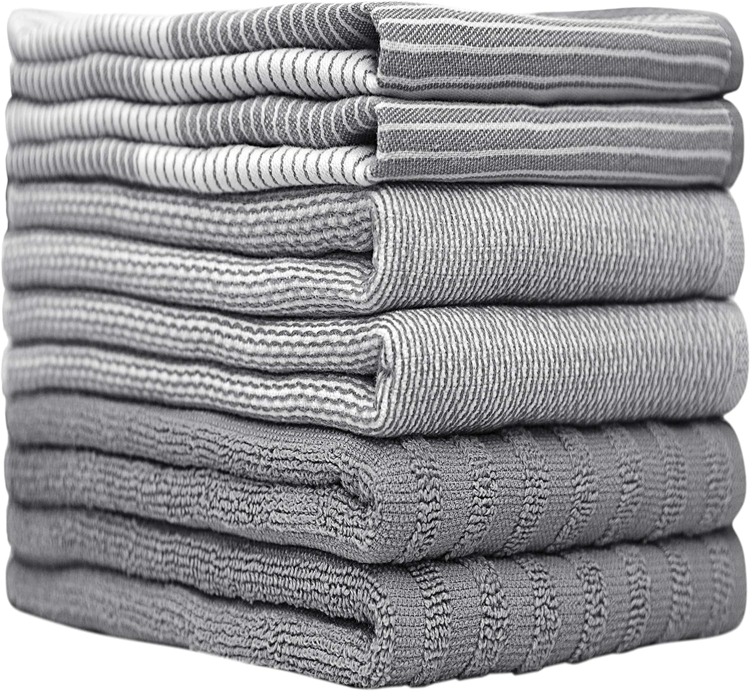 Premium Kitchen,Hand Towels (20”x 28”, 6 Pack) Large Cotton, Dish, Flat & Terry Towel Highly Absorbent Tea Towels Set with Hanging Loop Gray