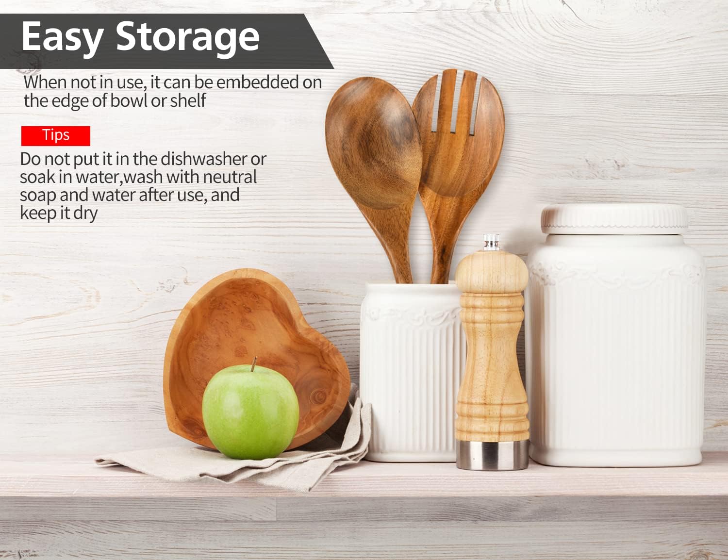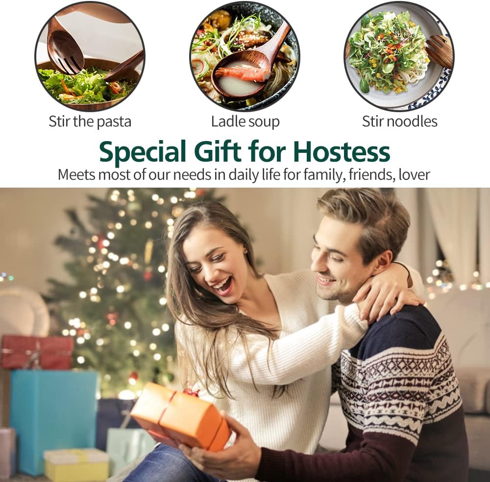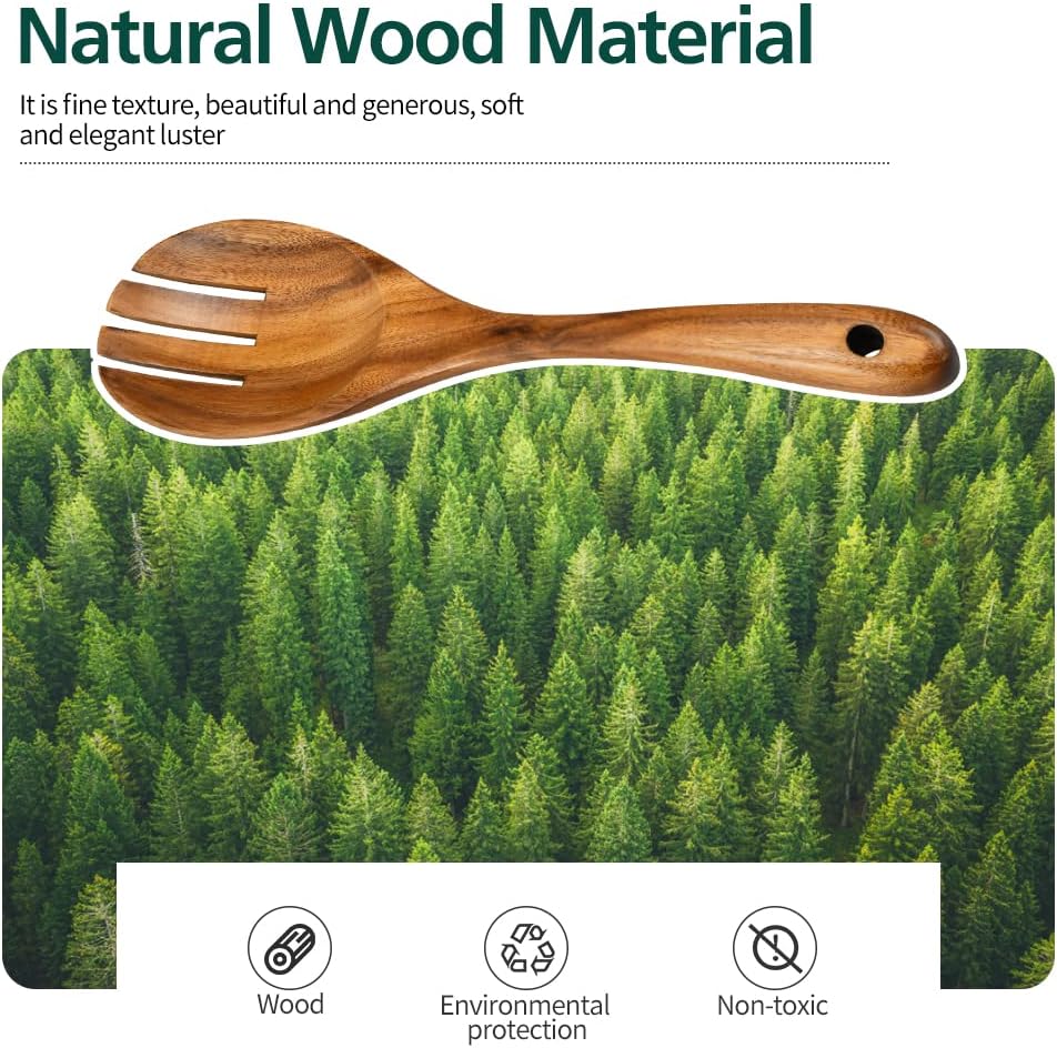 Salad Servers, Wood Salad Tongs, 10.2in Salad Spoon and Fork Set, Long Handle Salad Server Set for Mixing, Tossing and Cooking (Salad Spoon and Fork Set)