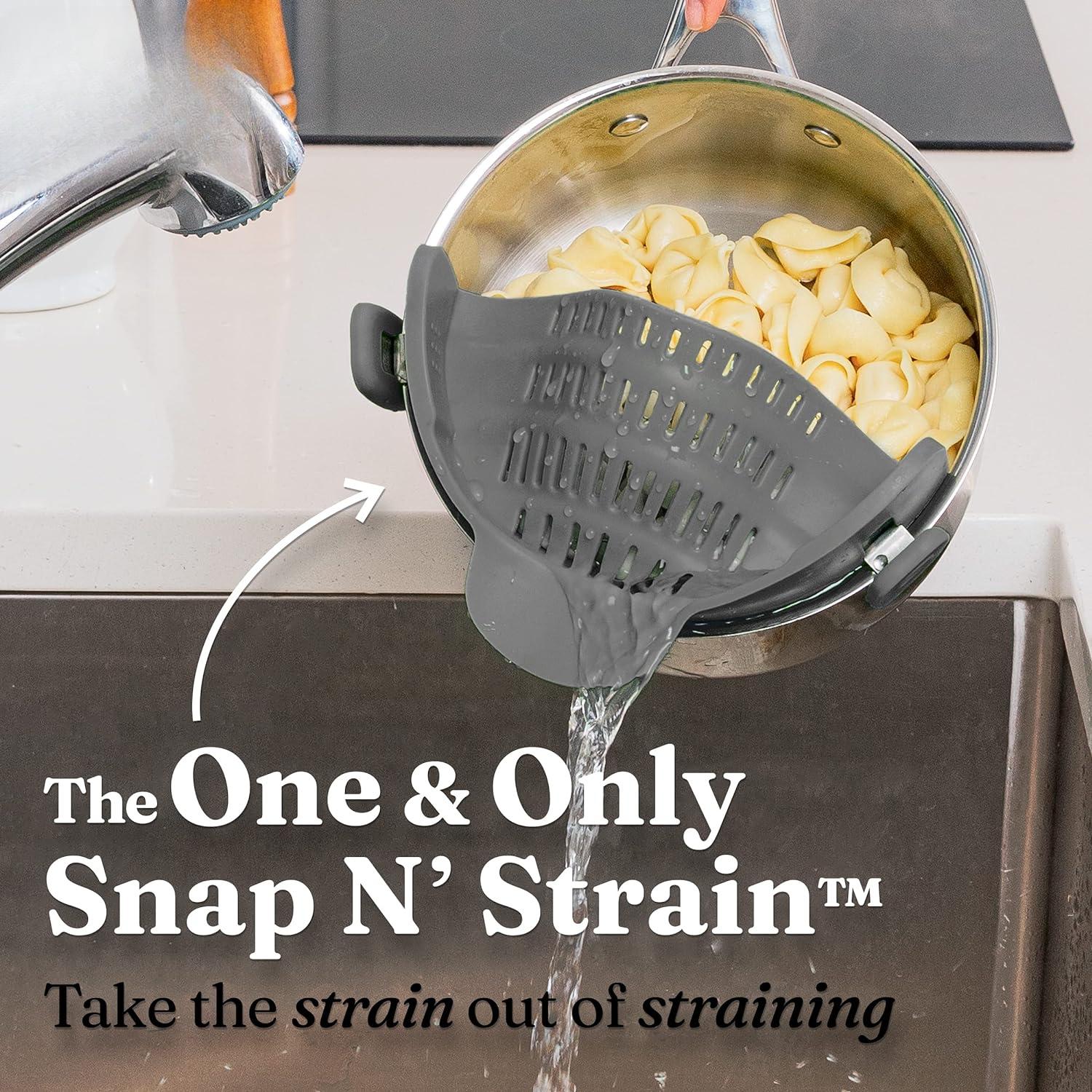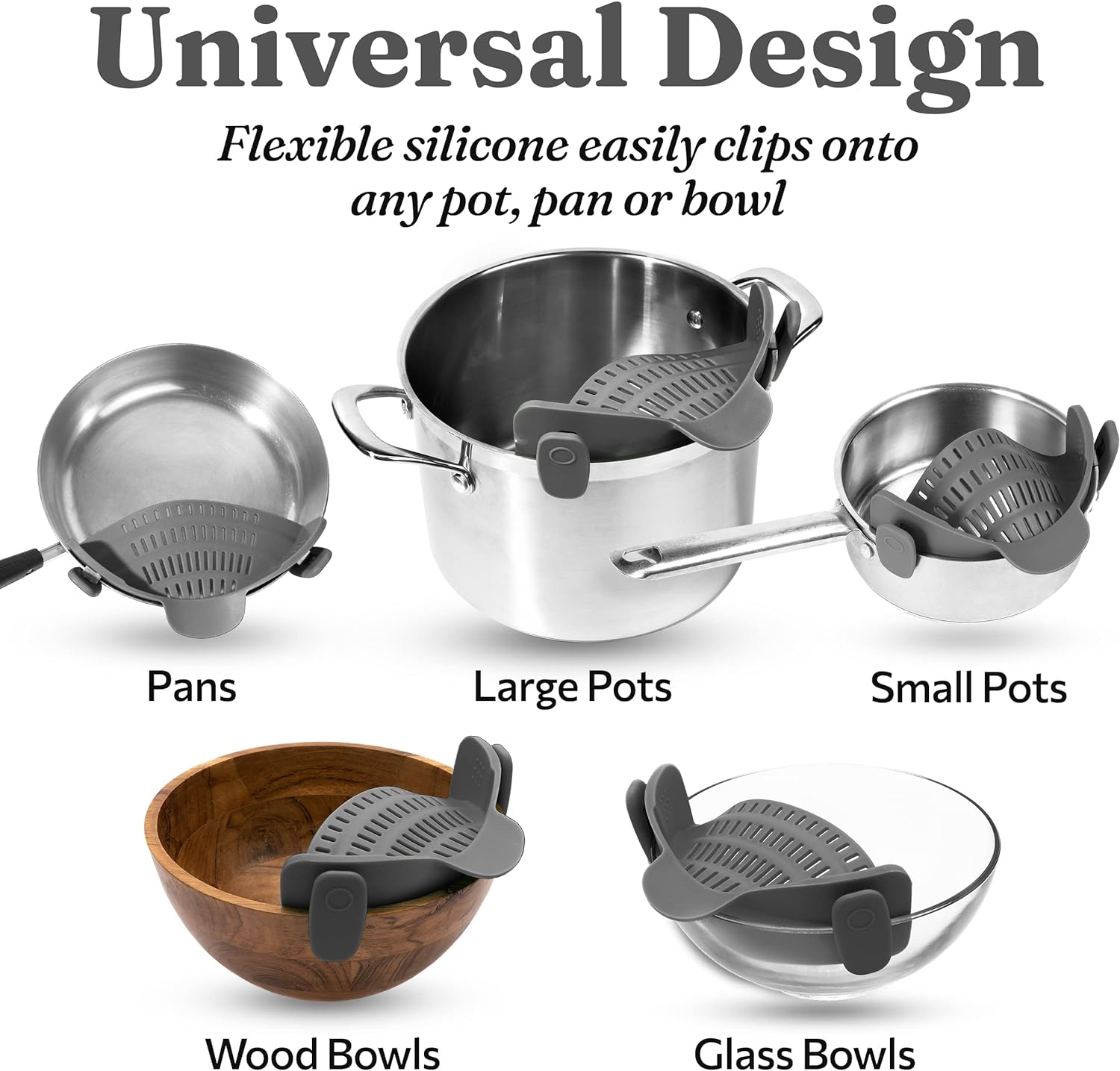 Strain Pot & Pasta Strainer - Adjustable Silicone Clip On Strainer for Pots, Pans, & Bowls- Kitchen Gadgets, Noodle, Food, Gifts for Women, Gray