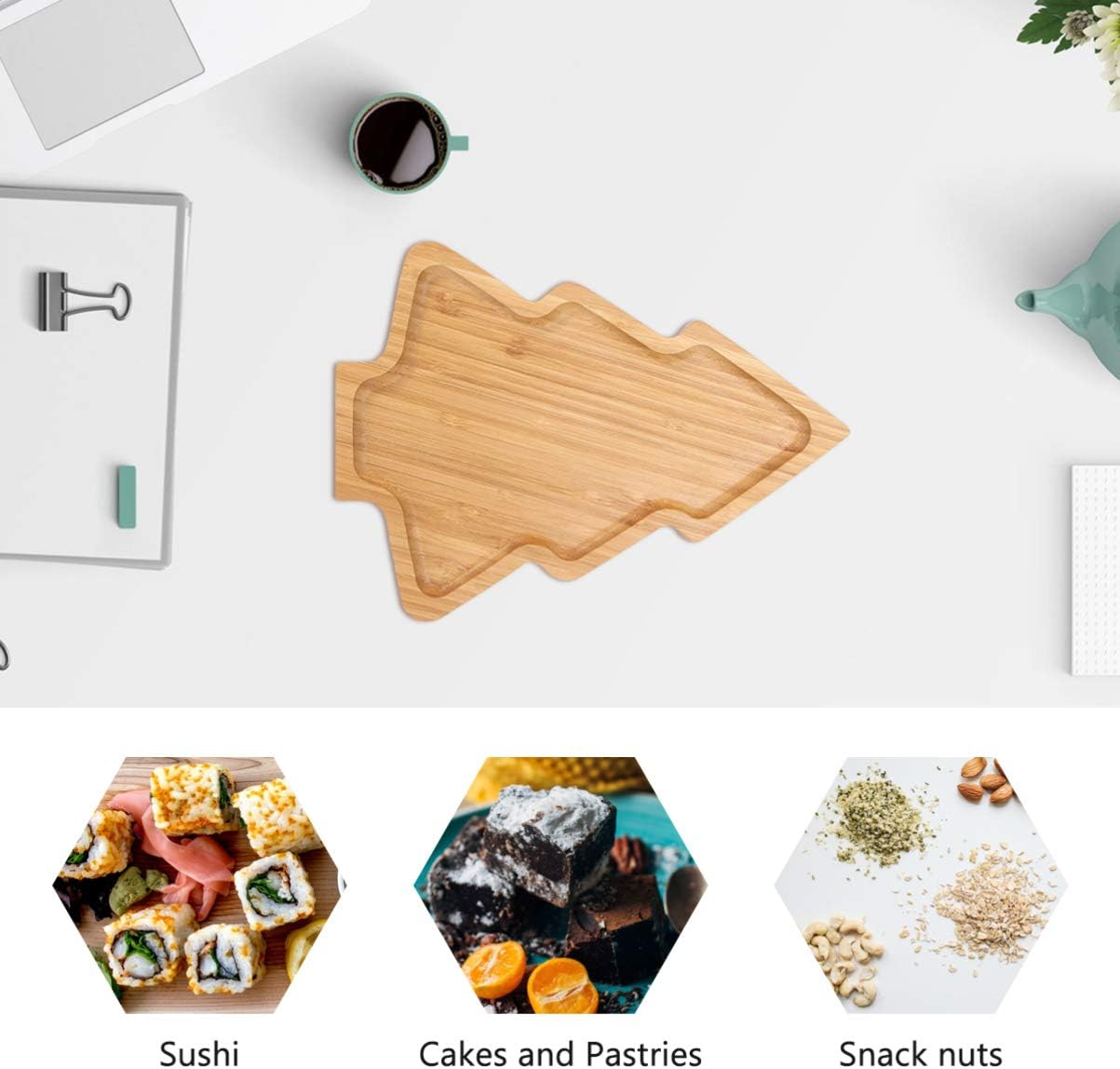 Wooden Appetizer Tray Christmas Tree Shaped Sushi Serving Tray Japanese Sashimi Plate Snack Dessert Candy Dish for Restaurant Home (11"x7.86")
