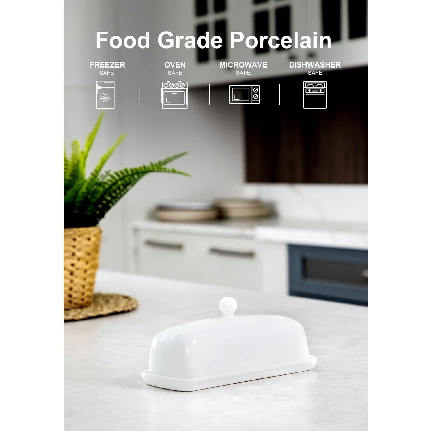 Porcelain Butter Dish - Clean Table Design - Ceramic Butter Dishes with Lid for Countertop with Raised Non-Slip Strip - Holds 1 Standard Butter Stick - Easy to Clean & Dishwasher Safe. White